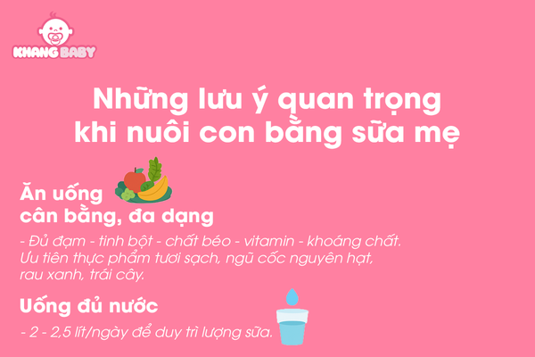 Uống đủ nước: 2 – 2,5 lít/ngày để duy trì lượng sữa.