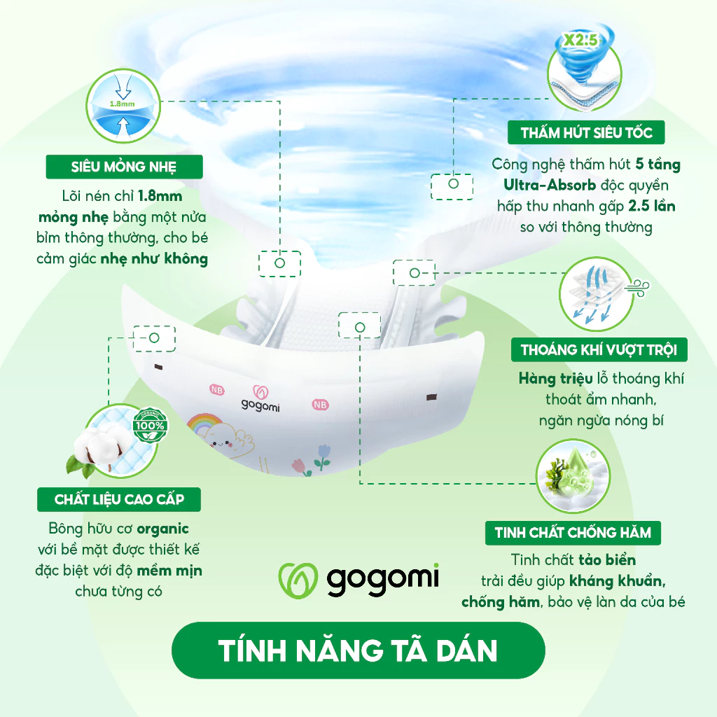 Những tính năng đột phá ở bỉm hữu cơ Gogomi
