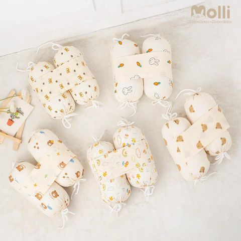 - Vỏ bộ gối chặn Molli làm bằng vải cotton có khả năng thấm hút tốt, không gây bí bách cho bé trong quá trình sử dụng.