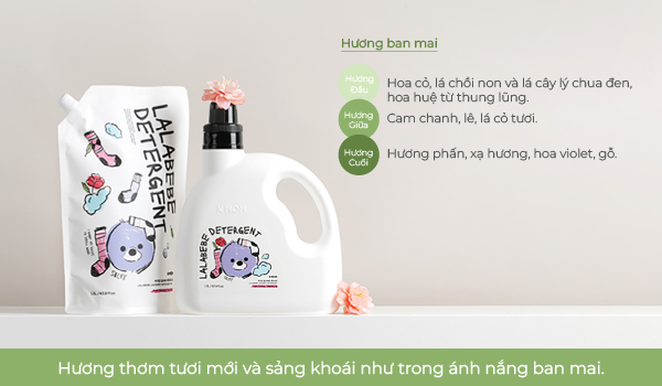 Nước giặt thuần chay Lalabebe K-MOM hương mộc lan có mùi hương tươi sáng và dịu nhẹ như đang bước đi dưới những tán hoa mộc lan, là sự kết hợp tinh tế bởi ba nốt hương: