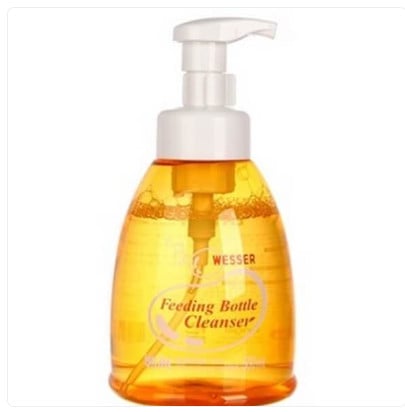 Cho vừa đủ lượng dung dịch vào bông tẩy rửa cùng một ít nước ấm và chùi rửa bình sữa cũng như các dụng cụ cho bé ăn khác.