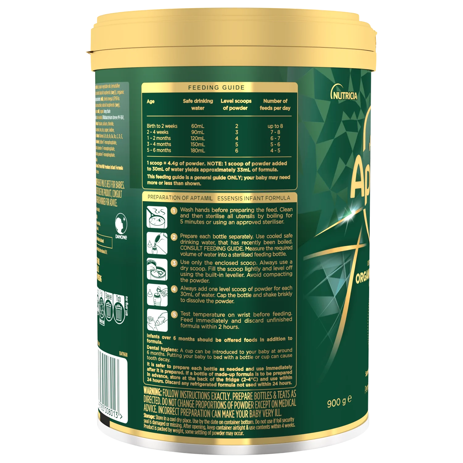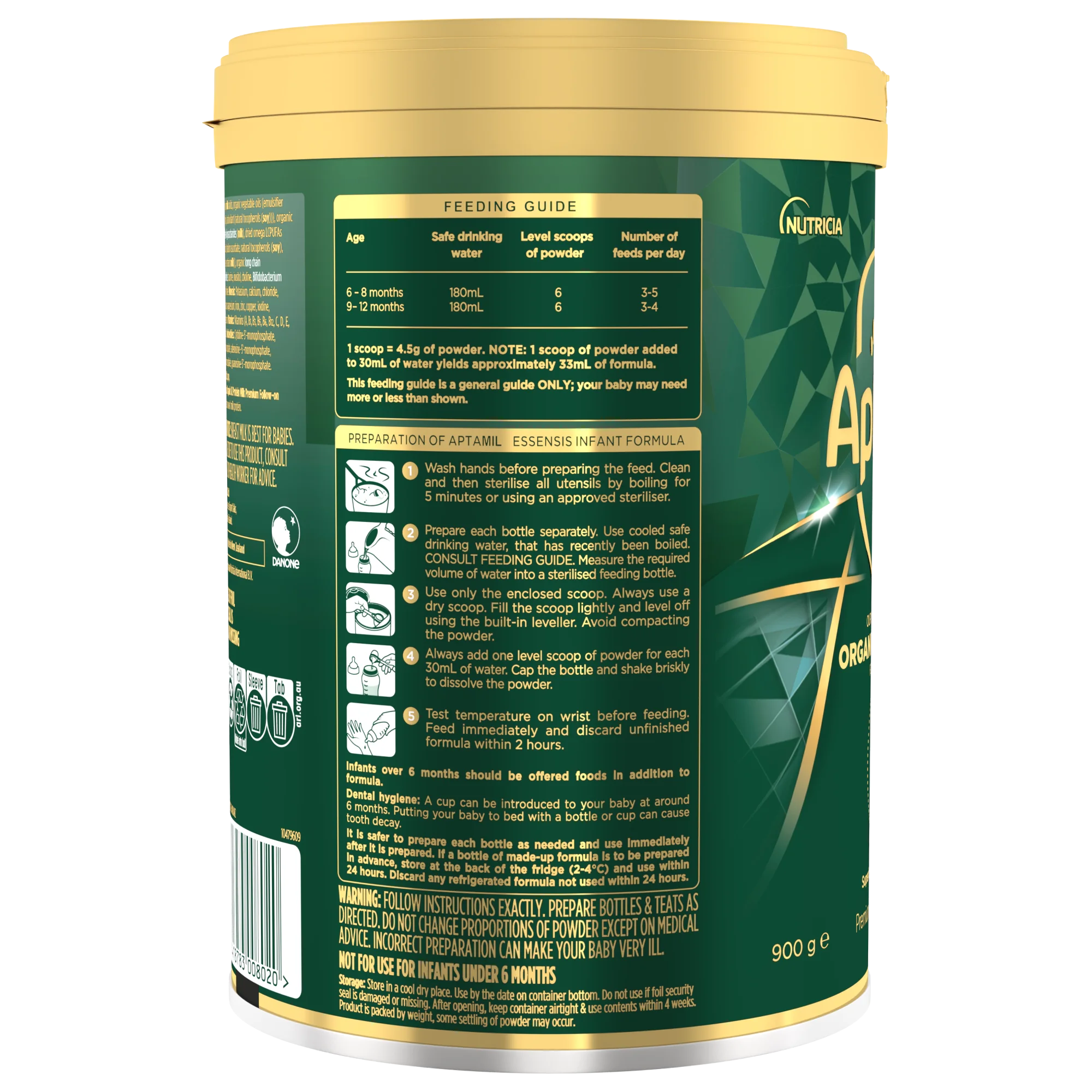 - Kiểm tra nhiệt độ trên cổ tay trước khi cho bé ăn. Sử dụng ngay lập tức (không được để lưu trữ). Loại bỏ phần thừa sau khi ăn chứ không được sử dụng lại. Chuẩn bị từng bình sữa riêng biệt. Điều này sẽ an toàn hơn để sử dụng sữa sau khi pha. Sản phẩm được đóng theo trọng lượng chứ không phải theo lưu lượng bột. Hiện tượng lắng bột trong mỗi lọ sữa có thể xảy ra trong quá trình vận chuyển và phân phối.