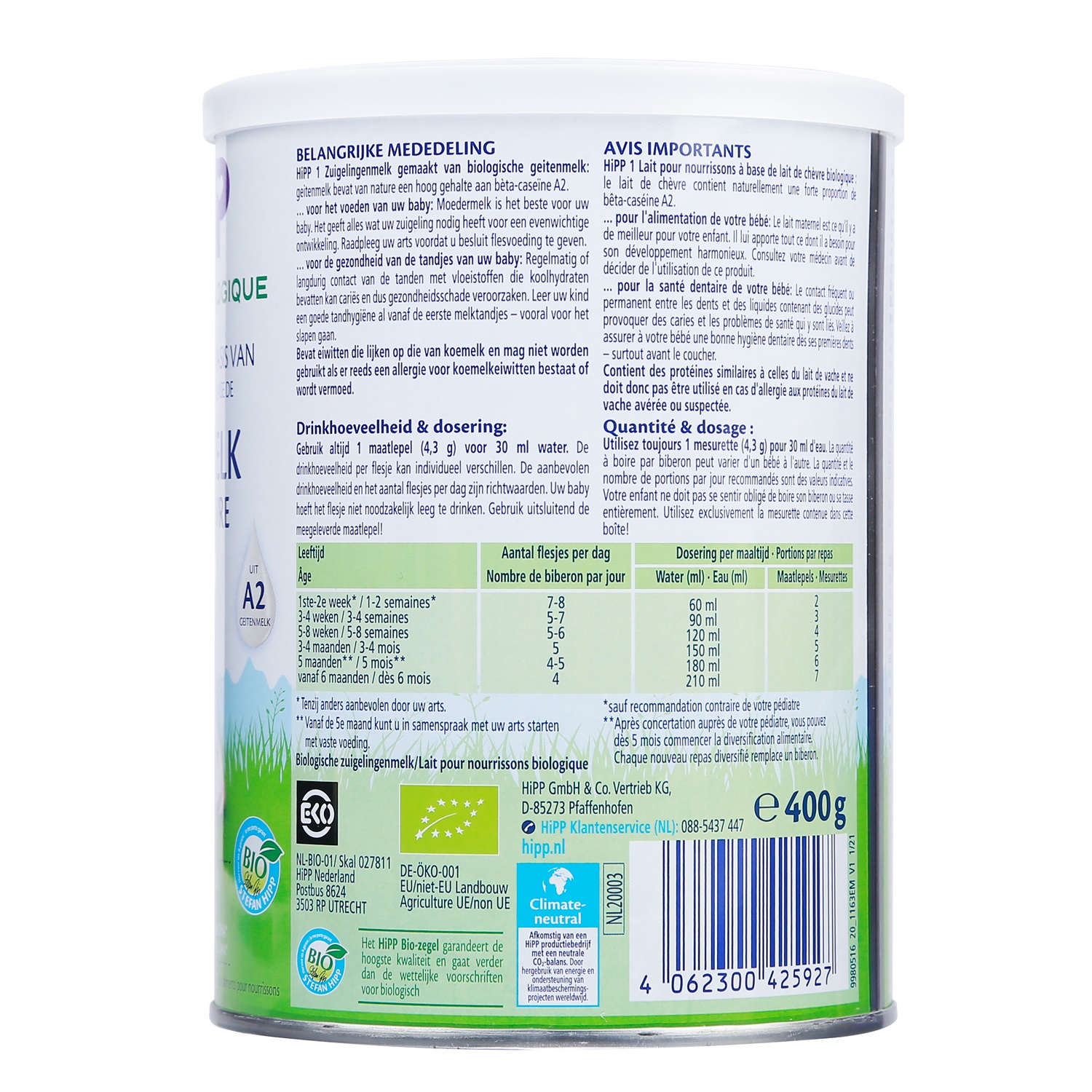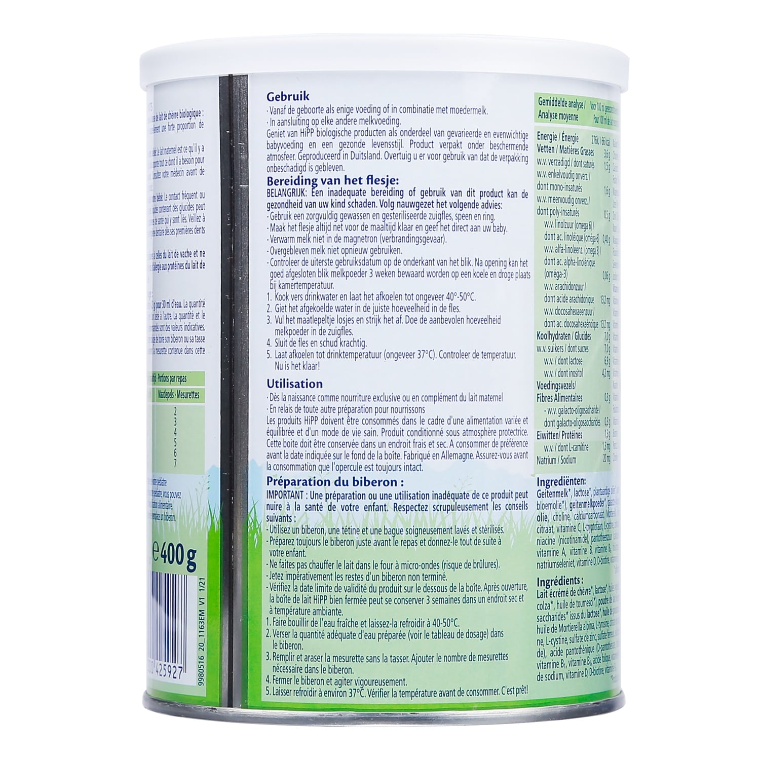 Tỉ lệ pha tiêu chuẩn: 12,9 g HiPP 1 Organic từ sữa dê + 90 ml nước = 100 ml sản phẩm đã pha.