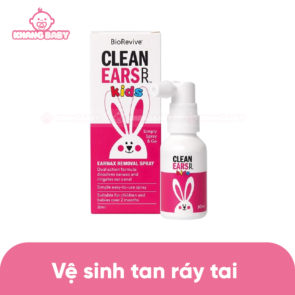 Cleanears Kids là một dung dịch xịt phun sương tan ráy tai sử dụng để vệ sinh ống tai giúp loại bỏ sự bám dính của ráy tai vào da lỗ tai vào màng nhĩ, làm ráy tai tự tan ra và tự đào thải ra ngoài. Sản phẩm dùng cho bé từ 2 tháng tuổi trở lên, an toàn và không tác dụng phụ.