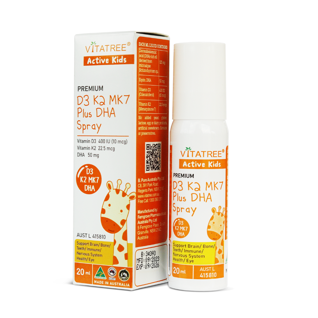 Sức mạnh tổng hợp giữa Vitamin D3 và K2 là không thể phủ nhận. Ở dạng xịt, Vitatree tối ưu hóa việc sử dụng canxi để tăng cường sự phát triển của xương và tăng cường hệ thống miễn dịch.